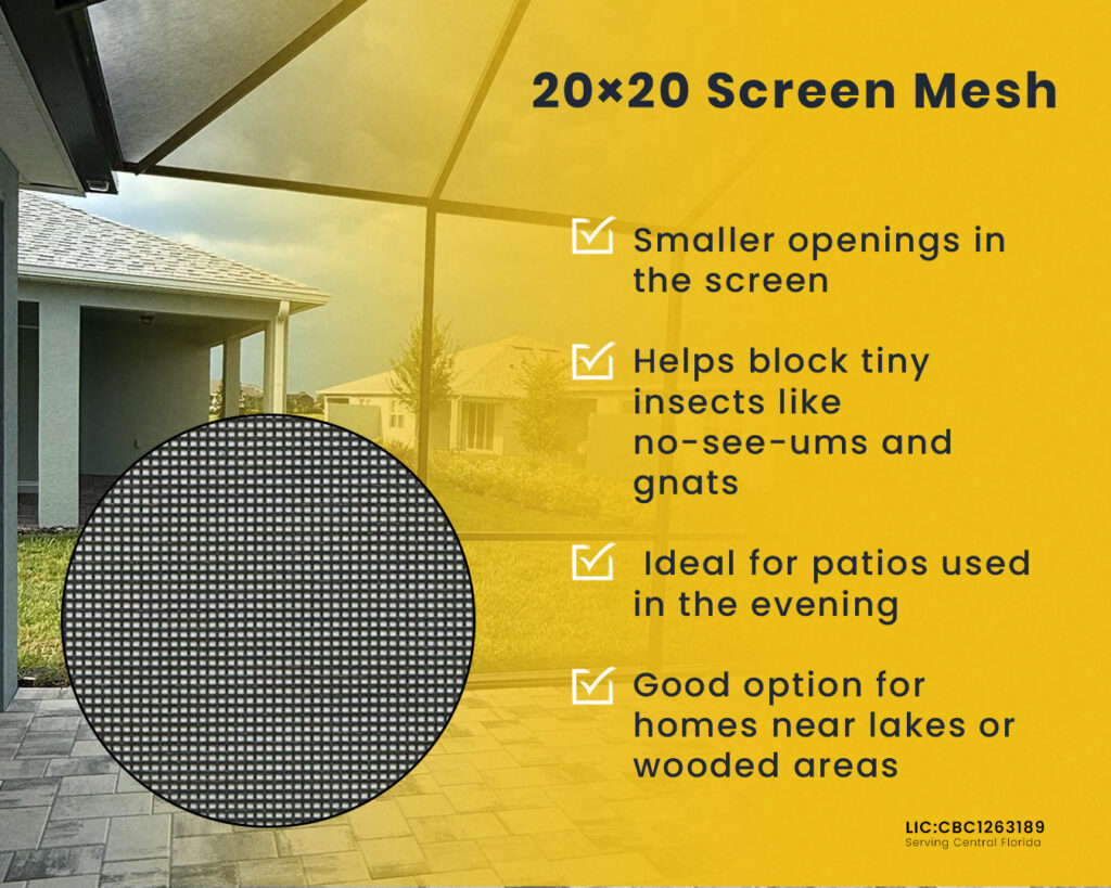 Understanding the difference between 20×20 and 18×14 mesh helps homeowners make better decisions when rescreening their patio enclosures.